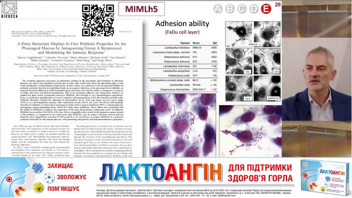 Великий інтерес аудиторії викликала доповідь професора Сімоне Гульєльметті з Університету Мілано-Бікокка (Італія). У своєму виступі він підкреслив, що парапробіотичні штами мікроорганізмів можуть бути дієвим інструментом сучасної медицини. Одним із найбільш вивчених прикладів є Lactobacillus helveticus MIM-LH5, який, за науковими даними, сприяє зменшенню запалення, чинить антагоністичний вплив щодо Streptococcus pyogenes та підтримує імунну рівновагу в порожнині рота. На основі цього штаму створено Лактоангін®, формула якого окрім Lactobacillus helveticus MIM-LH5 також містить гіалуронат натрію та сухоребрик лікарський. Така комбінація компонентів підтримує слизову оболонку ротоглотки, сприяє зменшенню дискомфорту в горлі та зниженню ризику загострень у пацієнтів із хронічними захворюваннями верхніх дихальних шляхів. Лактоангін® може бути рекомендований,