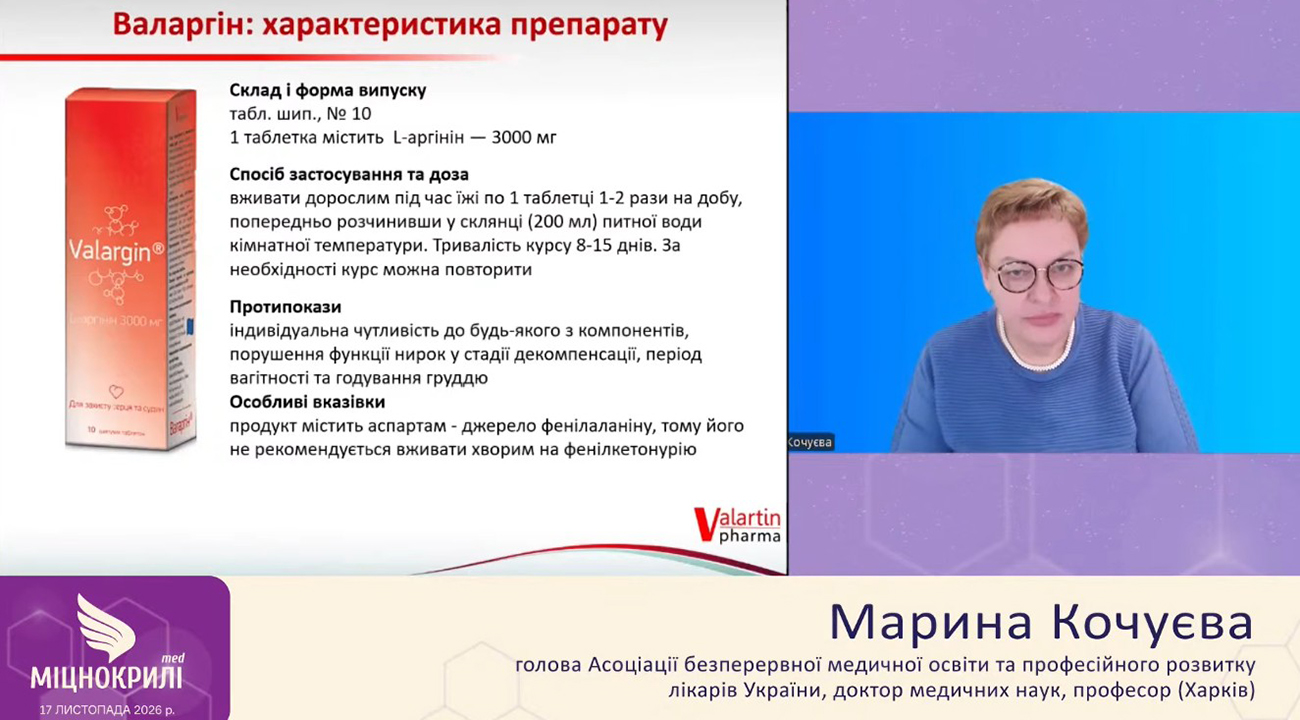 Однією з ключових подій конференції стала доповідь професора Марини Миколаївни Кочуєвої - доктора медичних наук, голови Асоціації безперервної медичної освіти та професійного розвитку лікарів України. У виступі на тему «Ендотеліальна дисфункція як ключова ланка у формуванні поствірусних ускладнень та астенічного синдрому» було представлено сучасні уявлення про роль ендотелію у розвитку поствірусних станів та астенічних проявів.