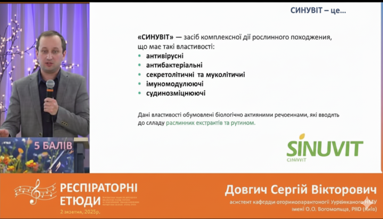Напередодні сезону гострих респіраторних вірусних інфекцій к.мед.н. Довгич С.В., кафедри оториноларингології НМУ ім. О.О. Богомольця, висвітлив актуальне питання застосування рослинних препаратів у терапії гострого риносинуситу.