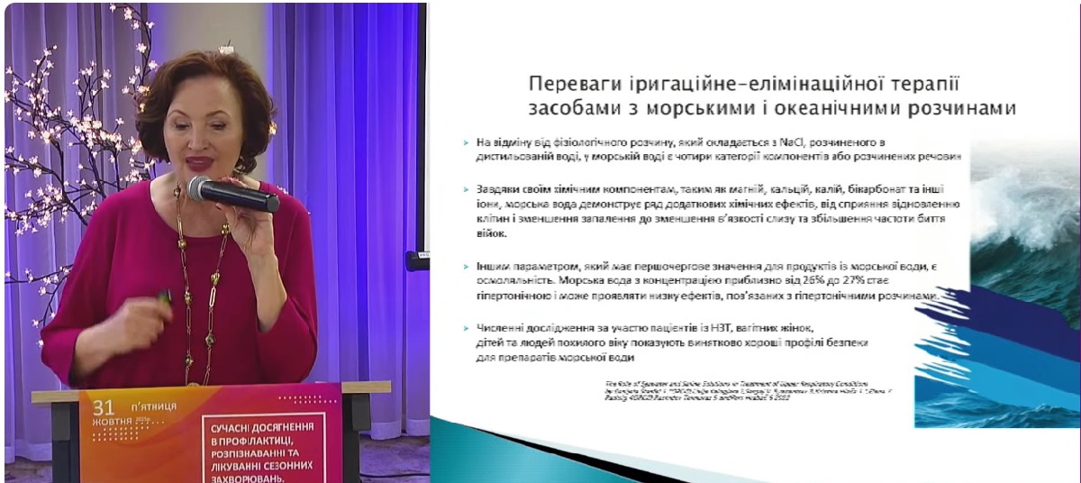 У своїй доповіді «Медикаментозний та немедикаментозний менеджмент алергічного риніту» спікерка наголосила на важливості іригаційної терапії для зменшення впливу алергенів на слизову оболонку носа.