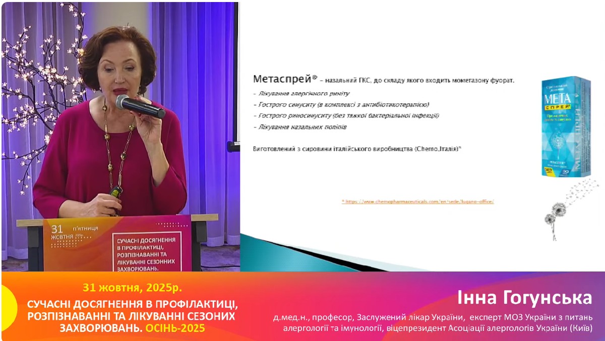 Окремий акцент у доповіді було зроблено на мометазоні фуроаті - інтраназальному глюкокортикостероїді, який широко використовується при алергічному риніті згідно з міжнародними та українськими клінічними настановами.